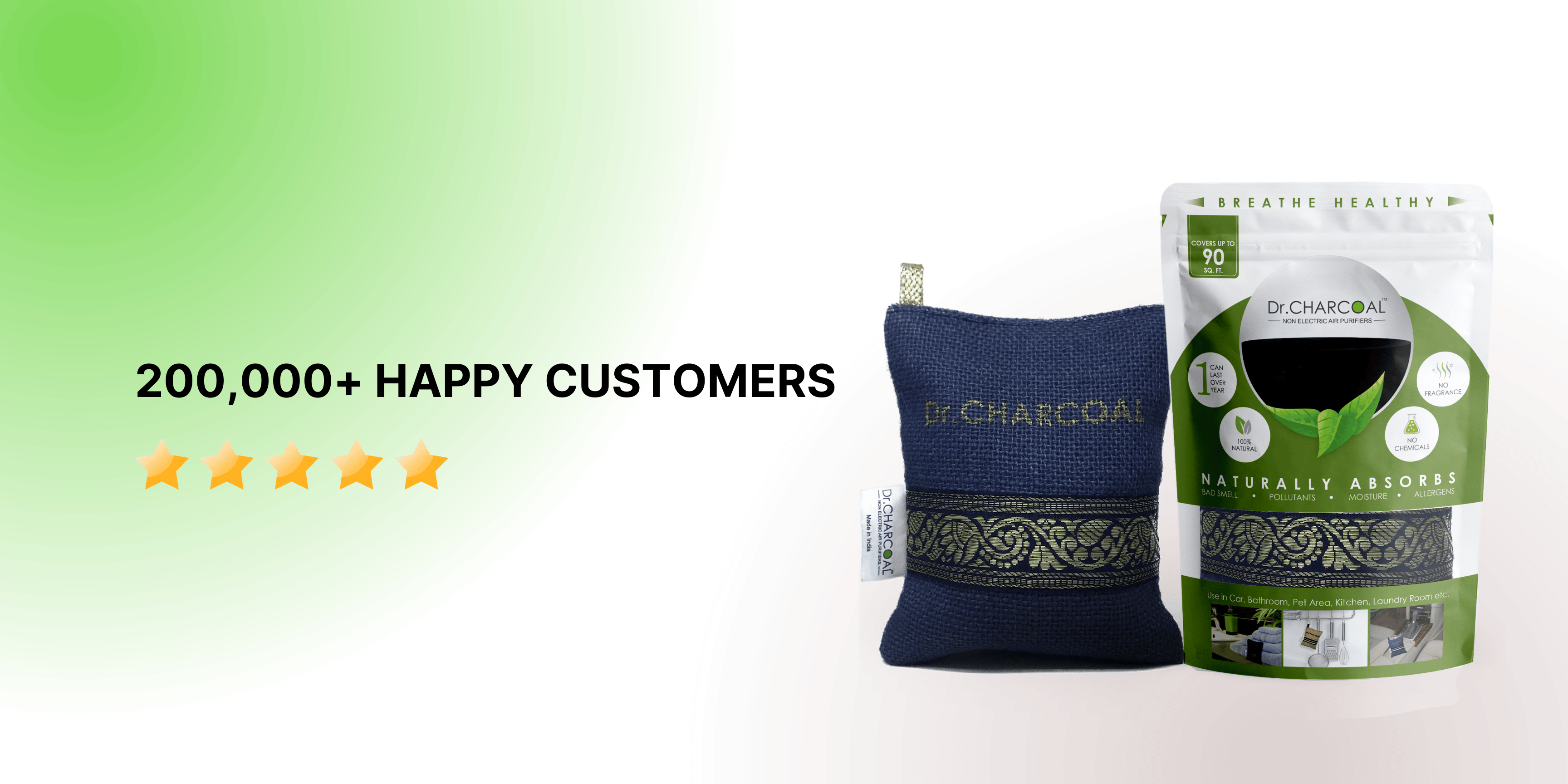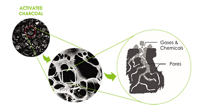 Made from coconut shell activated charcoal whose surface contains micropores that absorb nasty odors and impurities present in the air, just like a sponge leaving clean air outside the bag